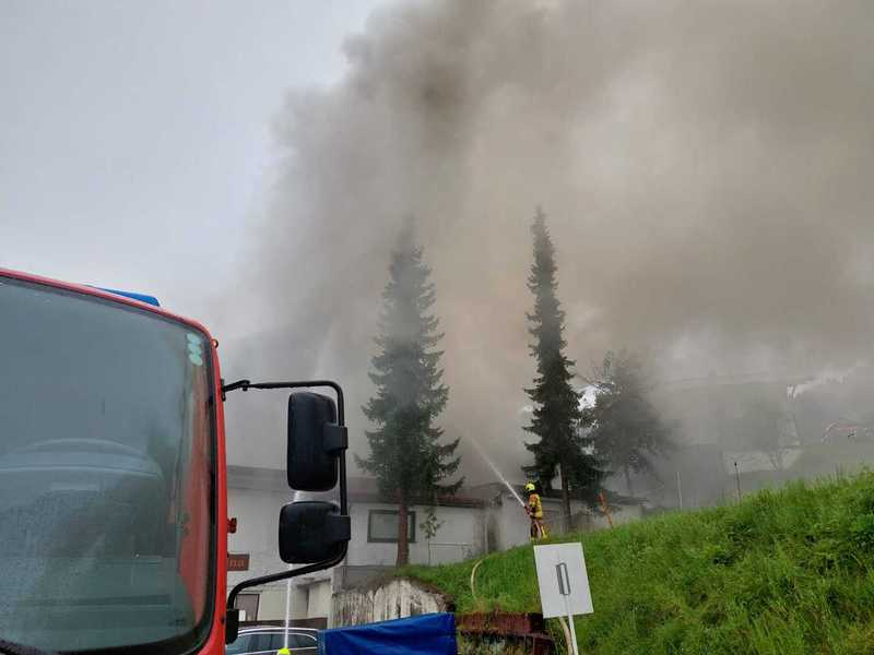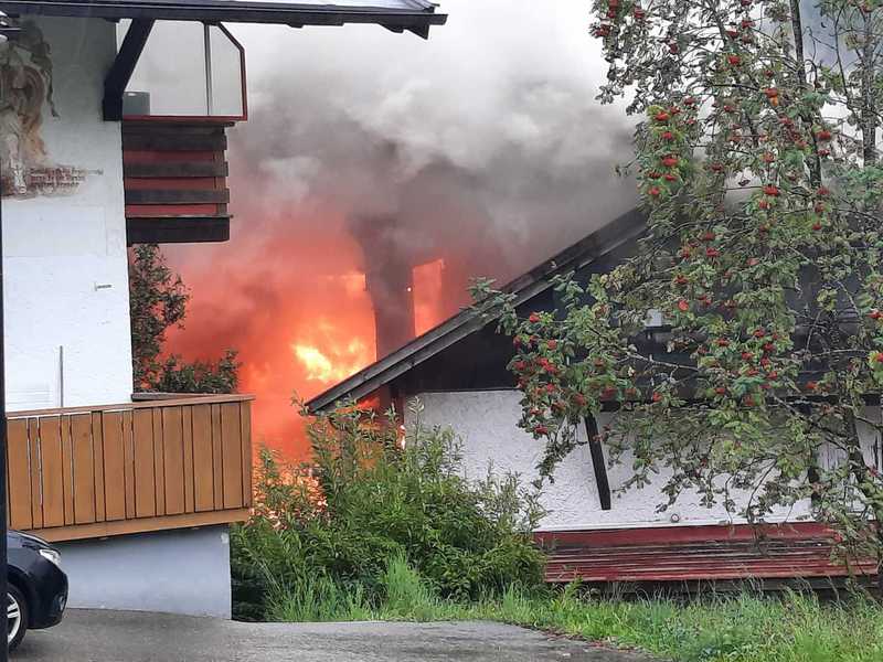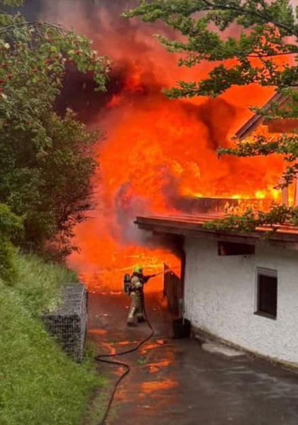 Am 05.09.2025 kam es kurz nach 12 Uhr im Ortszentrum von Hirschegg zu einem Großbrand in einem Mitarbeiterhaus.